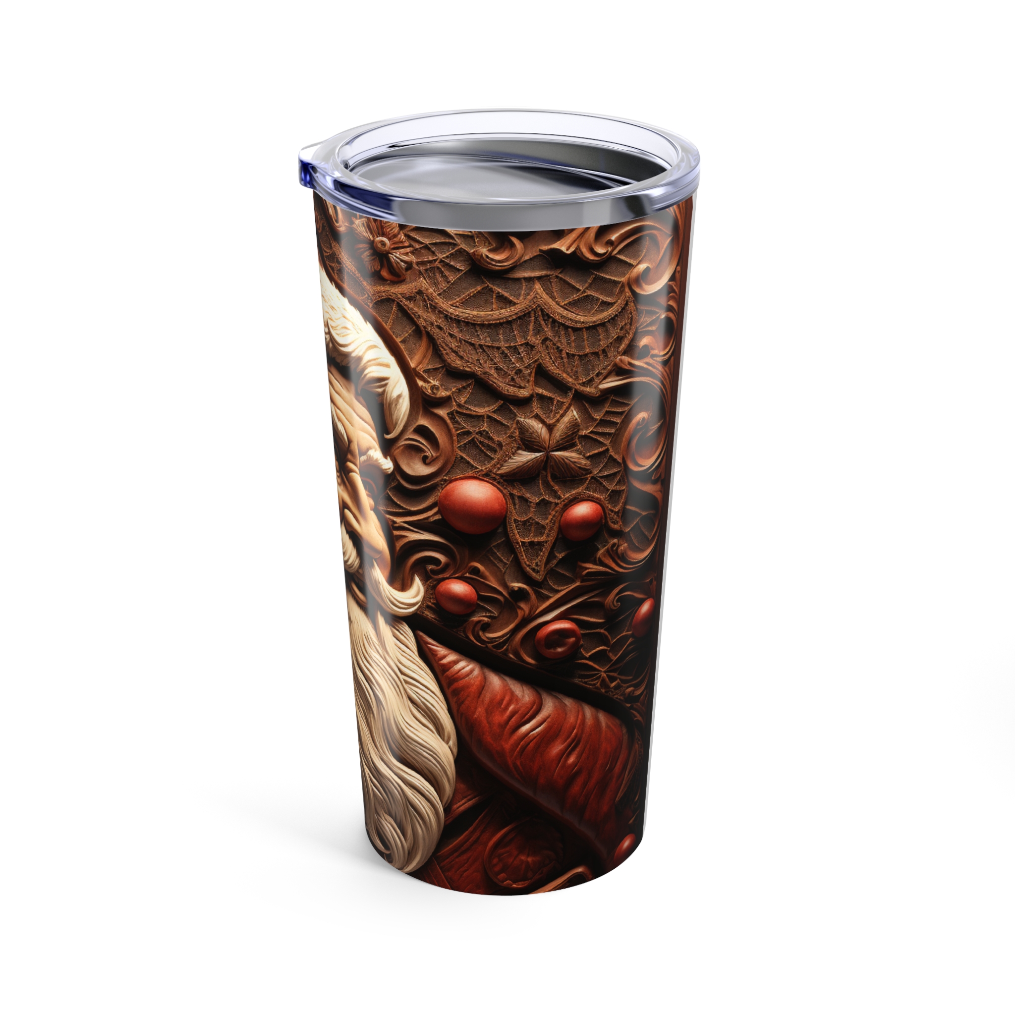 The perfect sized Travel Mug printed in the USA. This 3D Engraved Leather Look Christmas Santa (Design 2) 20oz Tumbler/Travel Mug is a great mug for Santa. This stainless travel-size tumbler is vacuum-insulated and built to last.