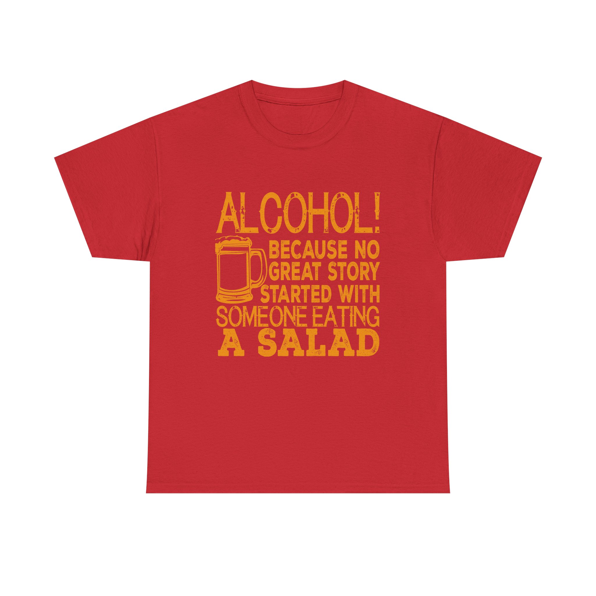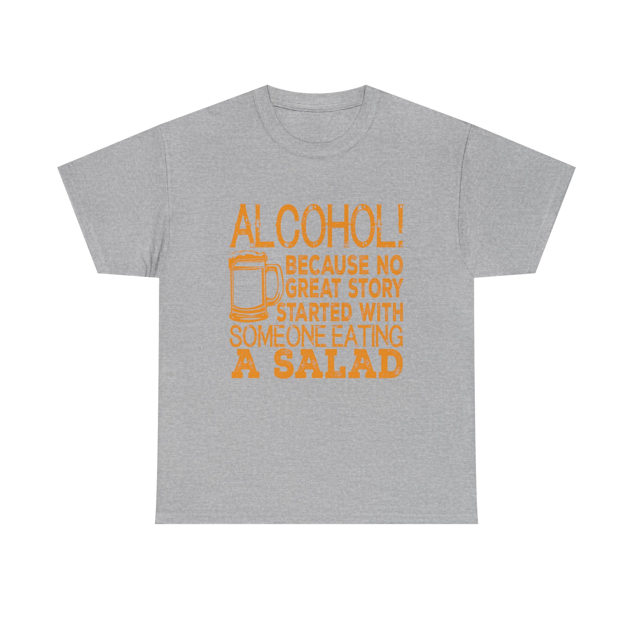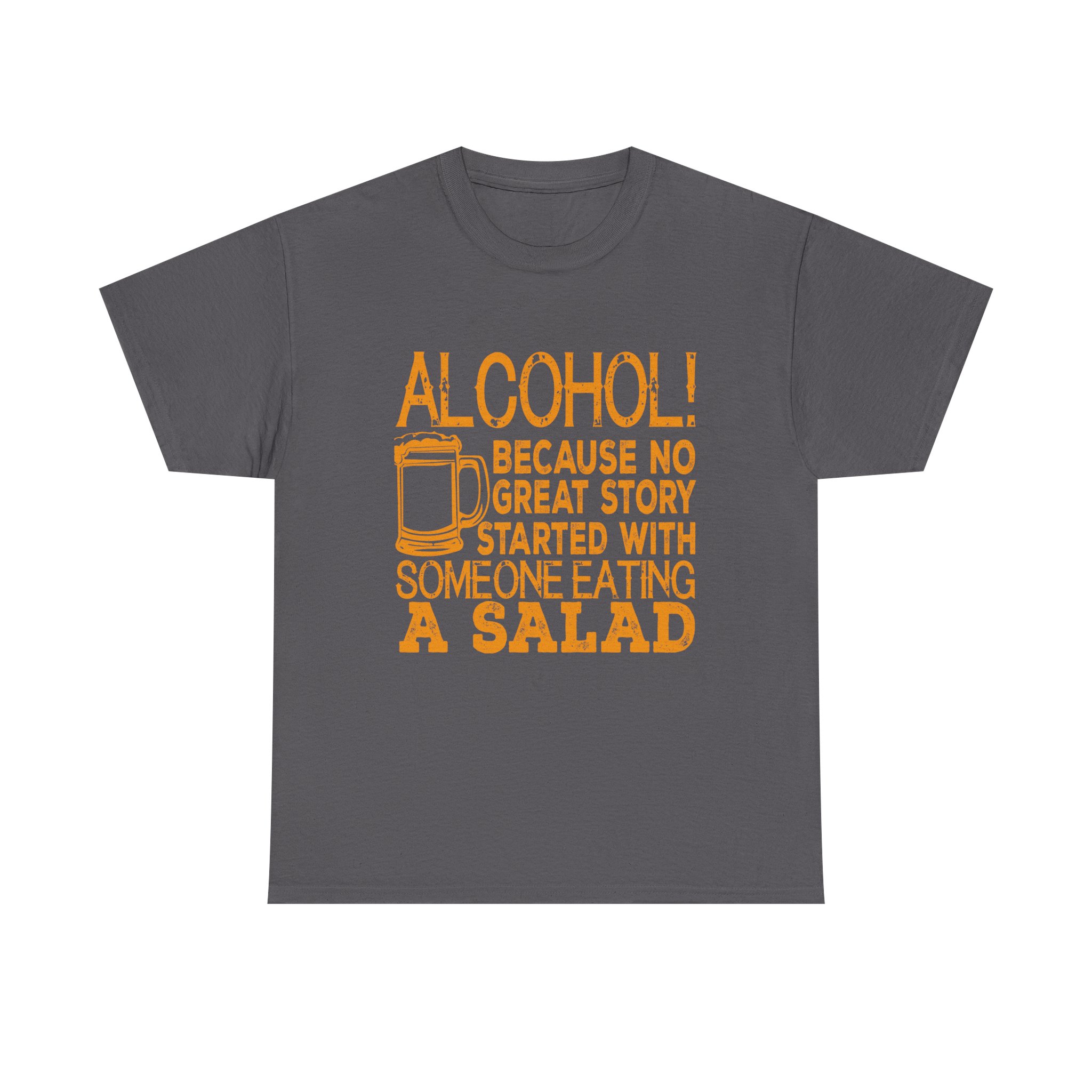 From our SNARKY COMMENTS collection comes our unique “Alcohol Because No Great Story Ever Started With Someone Eating A Salad” Unisex Heavy Cotton T-shirt exudes a fun and laid-back vibe, perfect for those who enjoy a good laugh and a relaxed style. Ideal for adults who love humorous and witty designs, this t-shirt is great for casual outings, parties, or as a unique gift for friends and family. Perfect for holidays, birthdays, and any occasion where a touch of humor is appreciated.
