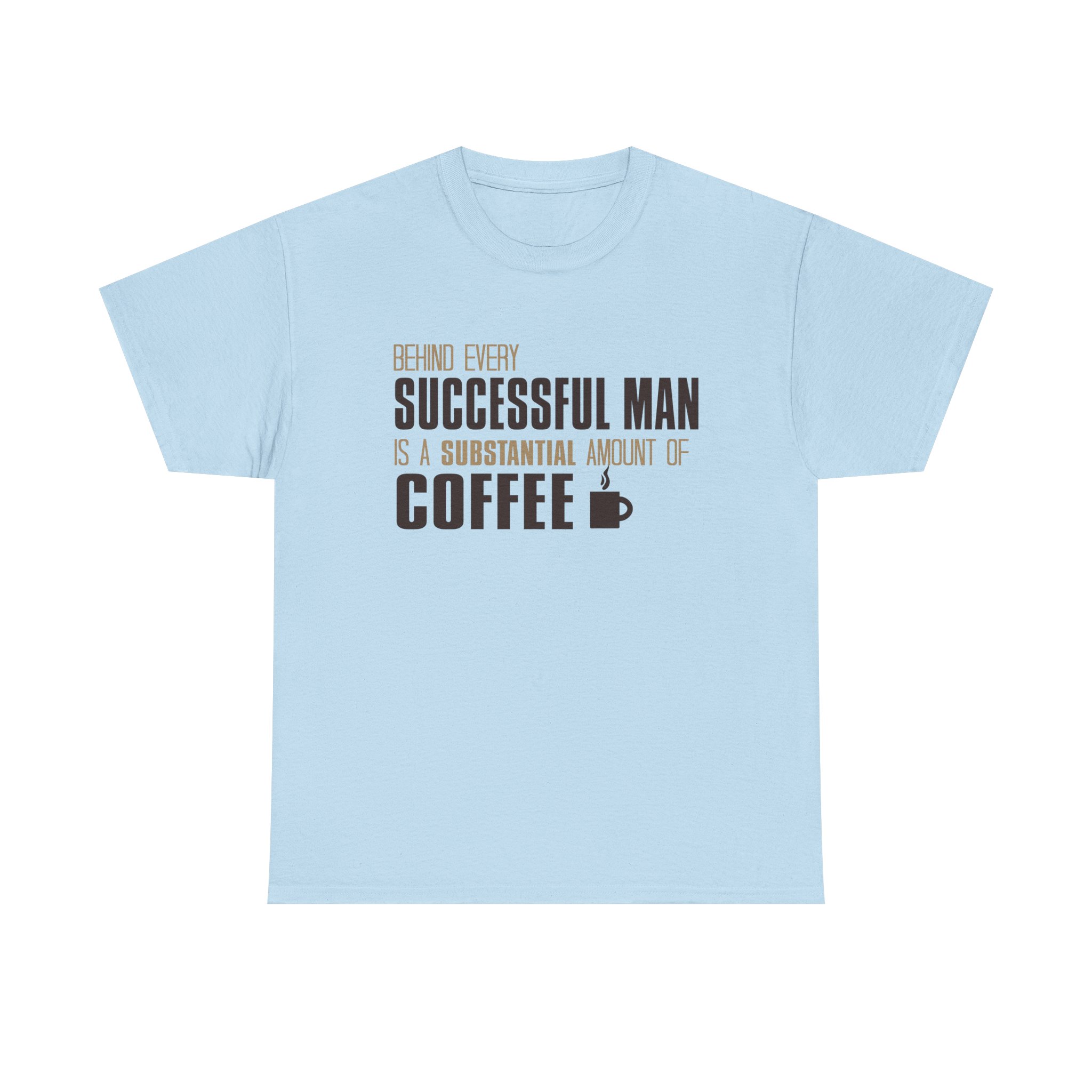 From our COFFEE LOVERS collection comes our unique “Behind Every Successful Man There Is A Substantial Amount Of Coffee” Unisex Heavy Cotton T-shirt. A witty and relatable t-shirt that celebrates the role of coffee in success, giving off a casual and humorous vibe. Perfect for coffee lovers and those who appreciate a good joke.