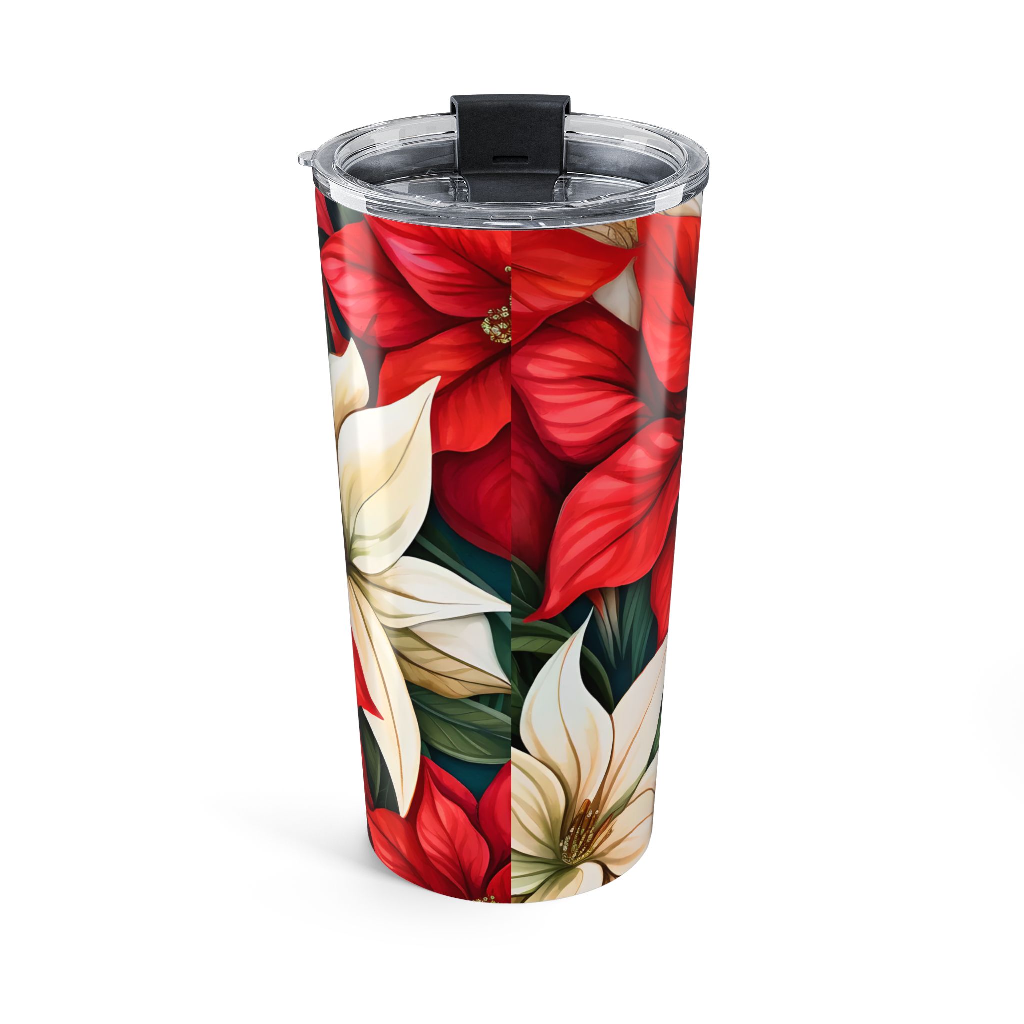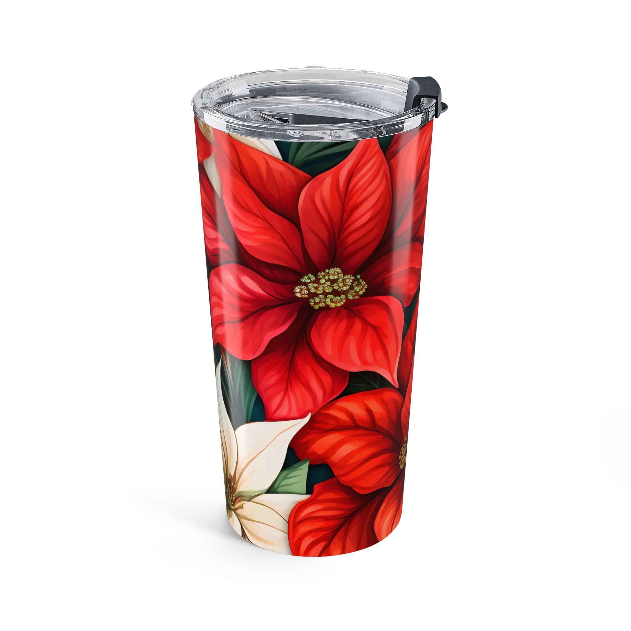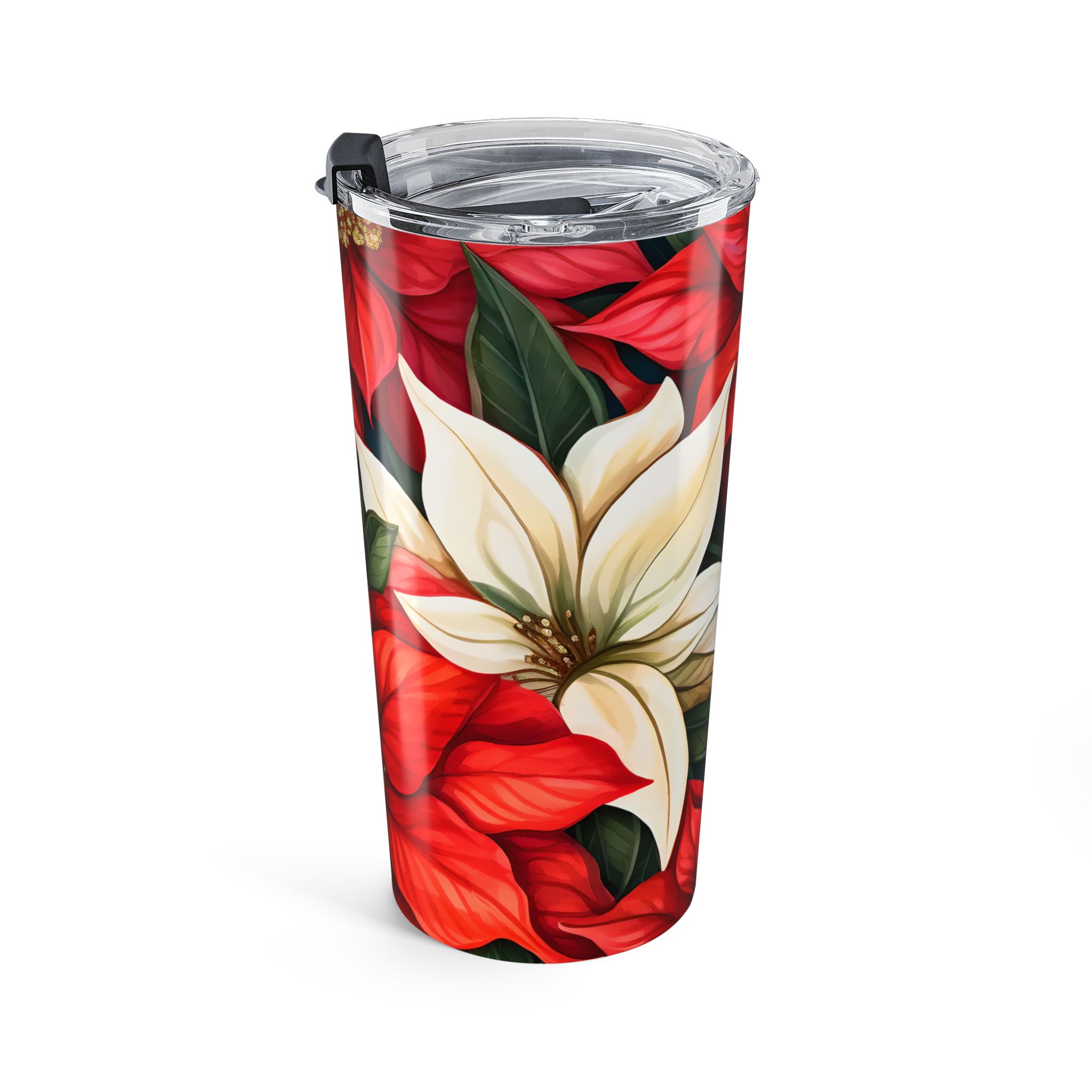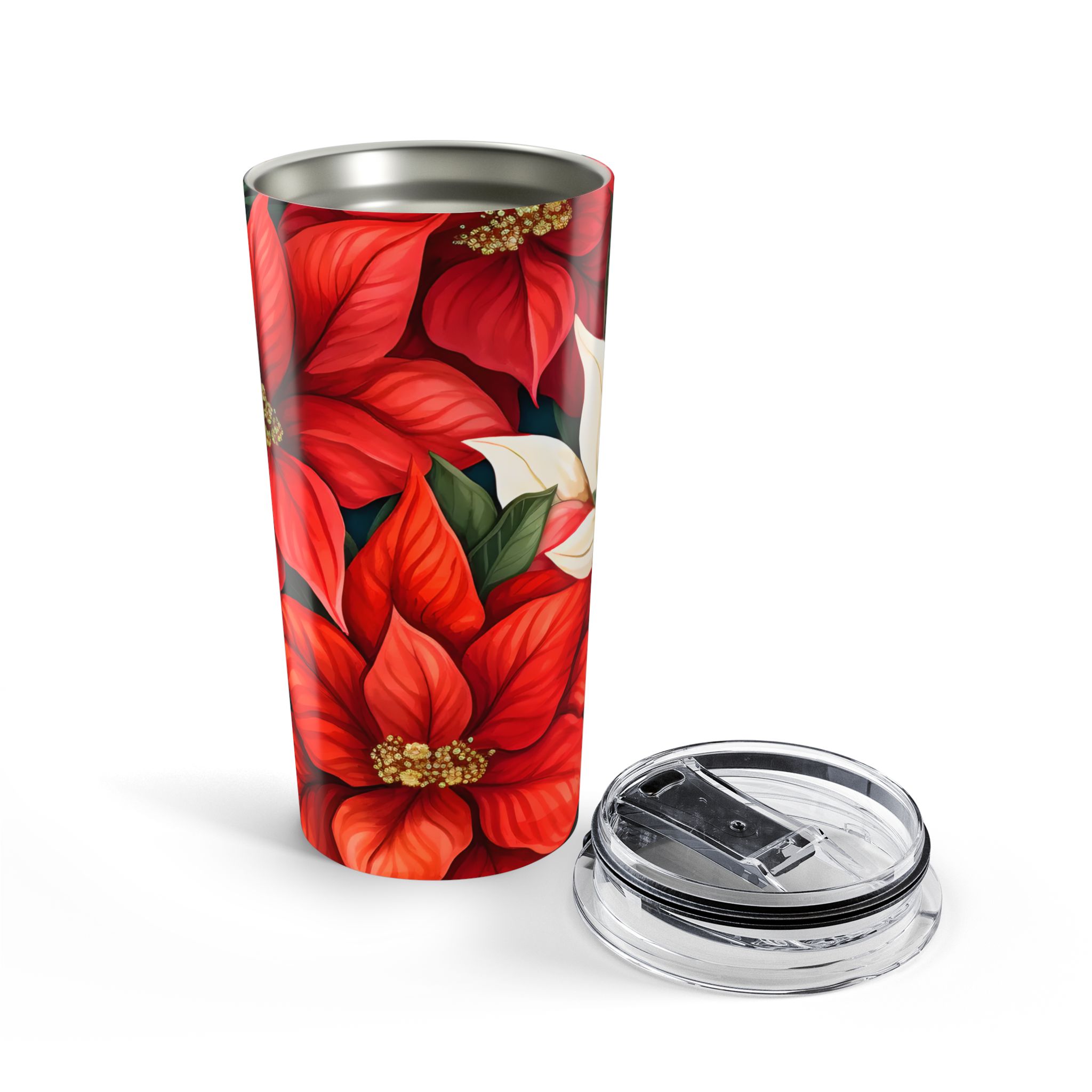 This Christmas Poinsettia 20oz Travel Mug/Tumbler gives off a festive holiday vibe. It is perfect for enjoying hot or cold beverages on the go during Christmas celebrations. The stainless steel design with a glossy finish is durable and dishwasher-safe. This makes it ideal for anyone looking for a stylish and practical holiday-themed tumbler. Perfect for those who enjoy festive drinks during the holiday season.